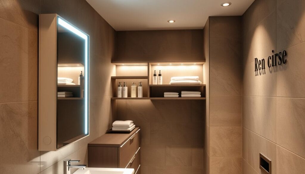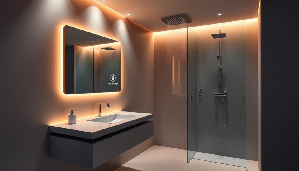 Small bathrooms can now enjoy the latest tech, blending luxury with practicality. Modern bathroom updates include smart devices that make life easier without taking up more space. Touchless faucets and voice-controlled systems show how tech can transform small areas.
