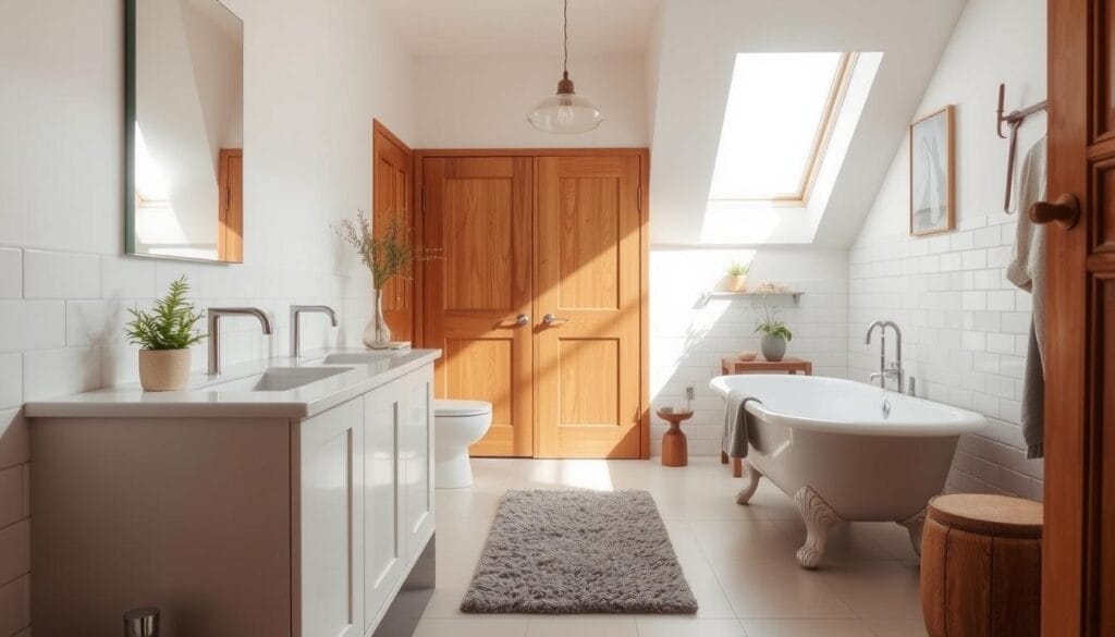 These bathroom design tips focus on lasting quality and brightness. Matte finishes cut down on glare. Semi-gloss options help light bounce around.