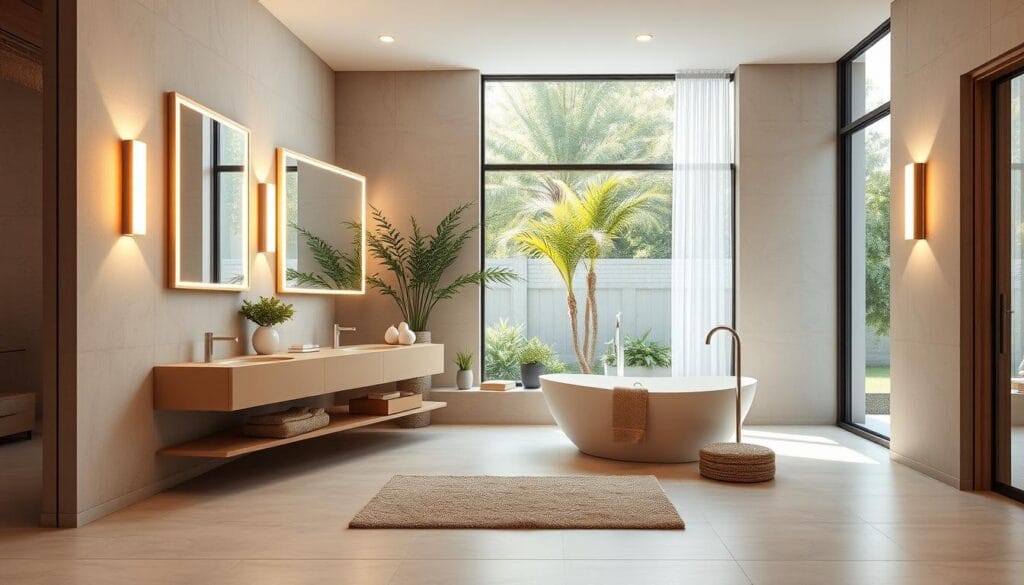 Make small bathrooms feel bigger by using color and material psychology. The right colors and finishes can make a room look deeper. They also fit well with contemporary bathroom decor trends. Choose elements that make the room feel brighter and more open.