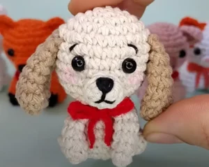 - With Brown yarn, embroider the nose and mouth in a “Y” shape on the muzzle.