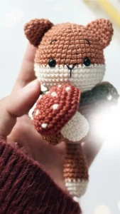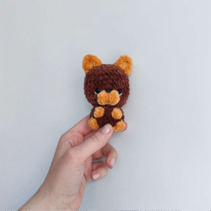 - For eyes (3DC Bobble): Work 3 double crochets (DC) into one stitch, leaving the last loop of each on the hook. Yarn over and pull through all 4 loops on the hook.