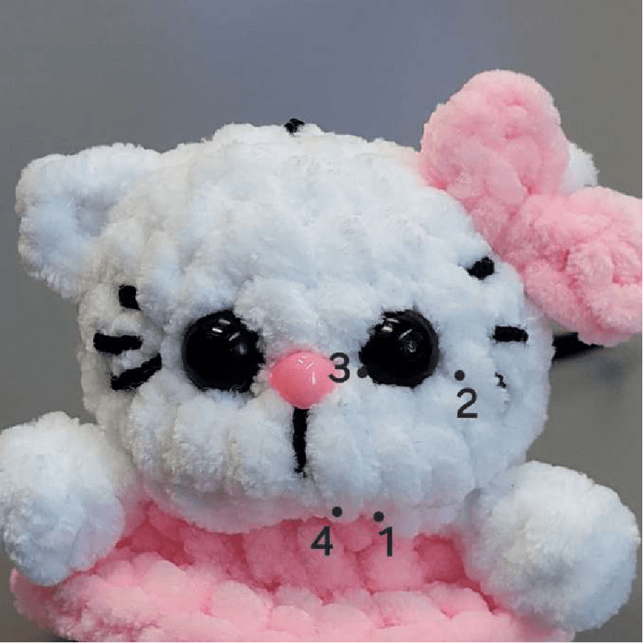 - Insert safety eyes between rows 8 and 9, 4 stitches apart.