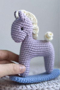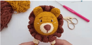- Muzzle: Sew the muzzle onto the face, centered just below and between the eyes, covering Rows 9-11 of the head.