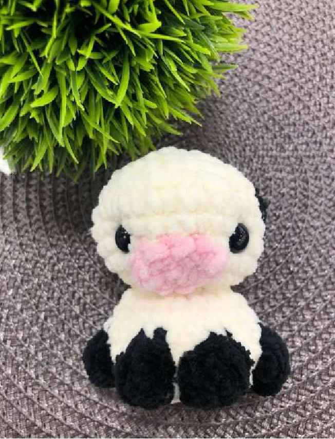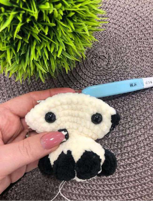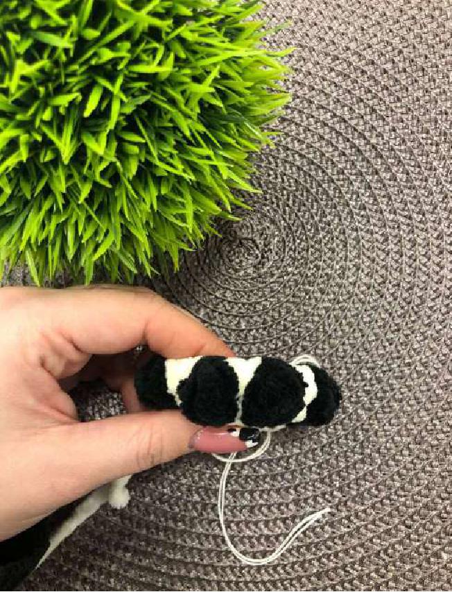 Finish off: Fasten off, weave the yarn tail through the front loops of the remaining 6 stitches, pull tight to close the hole, and hide the tail inside the head.
