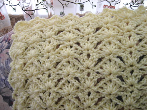 • Fan Shell – [(dc, ch 1) 5 times, dc] in stitch or space as indicated.