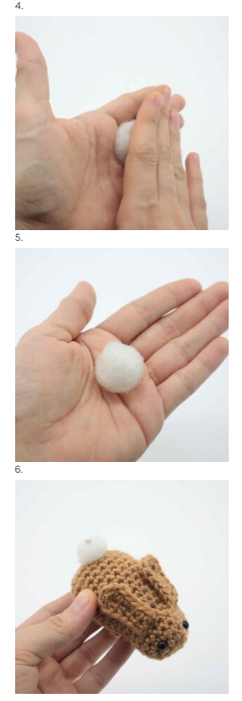- Apply a small dab of hot glue to the back of the bunny and press the stuffing ball into place.